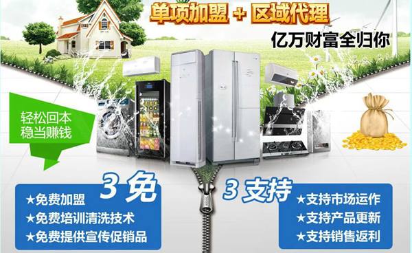 洗多多家電清洗招商加盟中心推出的有家用空調(diào)內(nèi)外機(jī)清洗,車用空調(diào)清洗,油煙機(jī)清洗,飲水機(jī)清洗,電腦清洗,太陽(yáng)能清洗,洗衣機(jī)清洗,冰箱清洗,中央空調(diào)清洗,各種家電清洗等清洗項(xiàng)目20多個(gè)。這些品類都是投資少,賺錢快,低風(fēng)險(xiǎn)高收益的特別適合創(chuàng)業(yè)的好項(xiàng)目。、家電清洗加盟廠家,家電清洗設(shè)備生產(chǎn)廠家,家電清洗劑,家電清洗設(shè)備